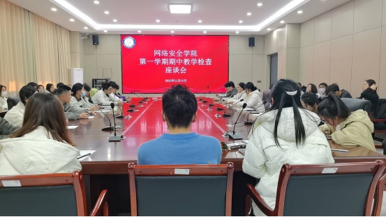 在网安楼A212召开第一学期期中教学检查座谈会,全方位把脉教学运行、倾听学生心声、优化教学管理。