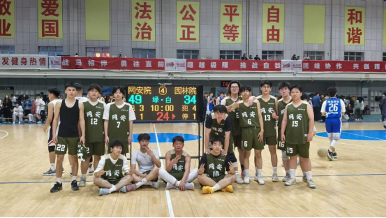 第五十届运动会男子篮球小组赛在风雨操场迎来一场激烈对决,对阵双方为网安学院男子篮球队与园林学院男子篮球队。最终,网安学院男子篮球队凭借出色发挥,以49:34的比分战胜园林学院男子篮球队,赢得比赛。